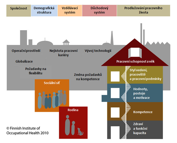 V České republice se běžně potkáváme s pojmem pracovní neschopnost, která je vztahována zejména ke zdravotnímu stavu jednotlivce. Pojem pracovní schopnost definovaný FIOH je širší a zahrnuje nejenom zdravotní stav pracovníka, který se promítá do výkonu jeho profese, ale i další faktory, jako jsou jeho kompetence, motivace, postoje, ale i vlivy přicházející z prostoru pracoviště. Působení těchto faktorů lze znázornit na modelu "Domu pracovní schopnosti".